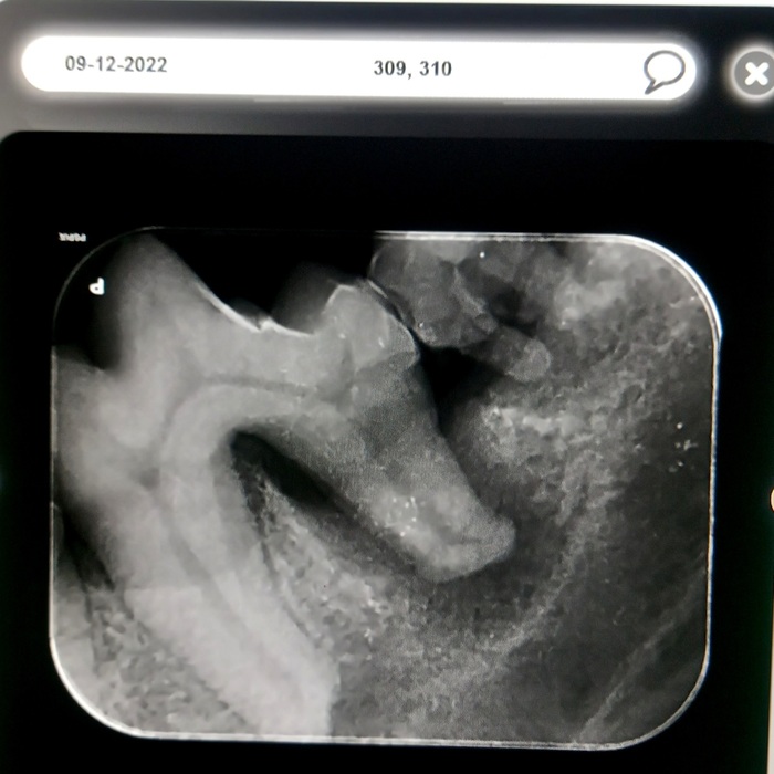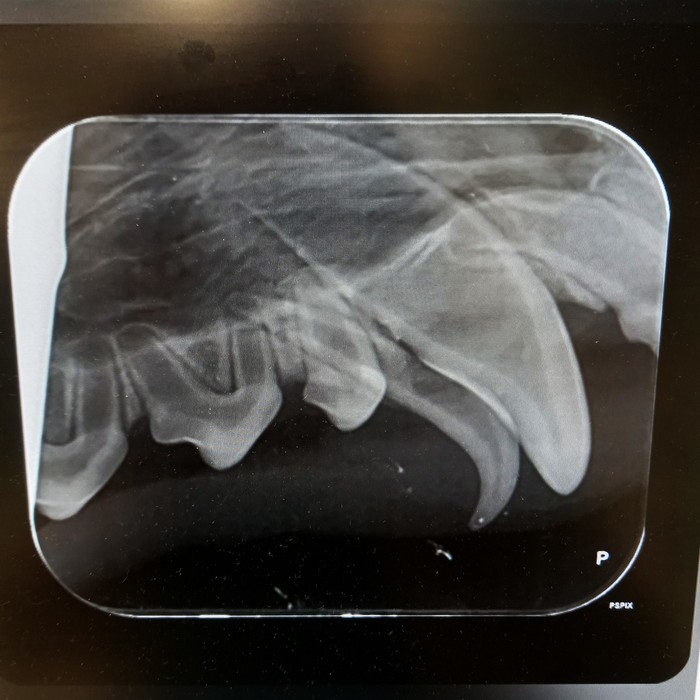 Na provedení rentgenologického vyšetření musí být pacient v anestezii. Je to z toho důvodu, že je při rentgenování potřeba umístit do dutiny ústní kazetu, která se při zhotovování snímku nesmí hýbat. Zároveň je potřeba kazetu napolohovat stejně jako hlavici rentgenu a hlavu pacienta, což je u bdícího zvířete nemožné. Pro posouzení všech zubů je potřeba zhotovit několik snímků. Záření používané na toto vyšetření je však velmi nízké intenzity, proto se nemusíte bát, že bude Vaše zvířátko mít problémy z ozáření.