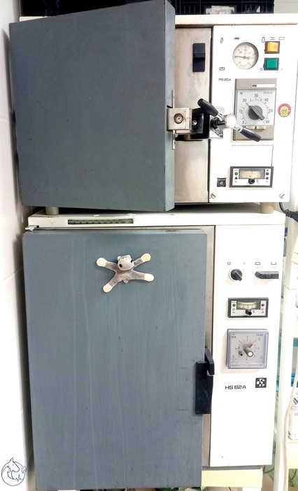 Sterilizační přístroje - autokláv a horkovzdušný sterilizátor slouží na sterilizaci operačního vybavení a chirurgických nástrojů.