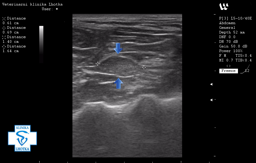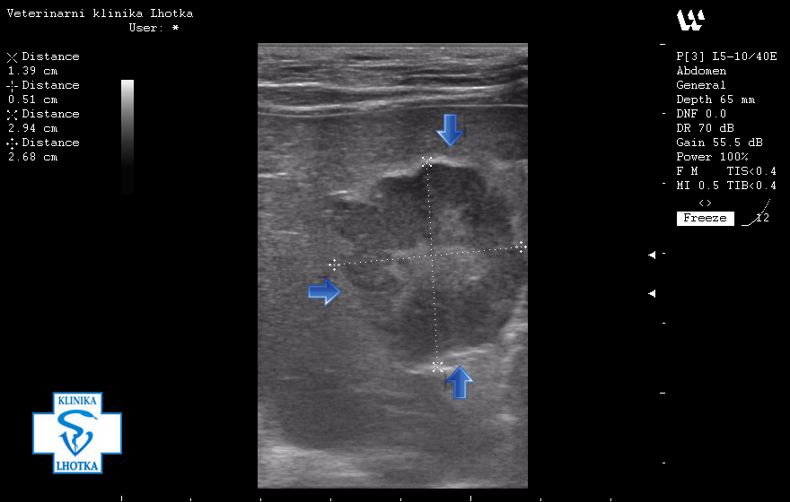 Před dvěma měsíci byla k nám na kliniku přivedena třináctiletá fenka křížence s dvěma útvary na mléčné žláze. Majitel udával, že si první bouličky všiml již před rokem. Druhá se objevila před několika měsíci. Obě bouličky se dle majitele pomalu zvětšovaly.