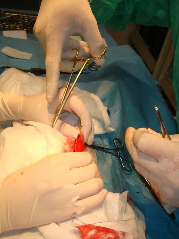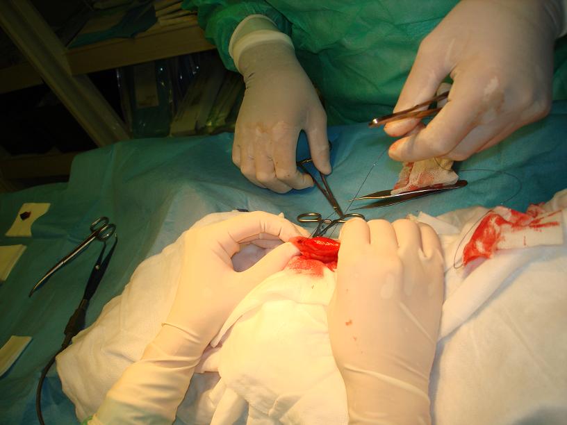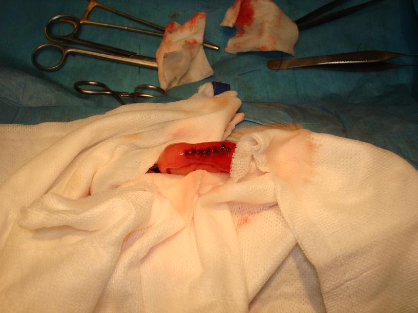 Následovalo zašití střeva a břišní stěny: