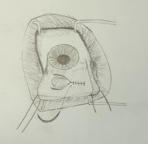 Prostor pod spojivkou se z části odpreparuje a žláza se „všije“ pod spojivku: